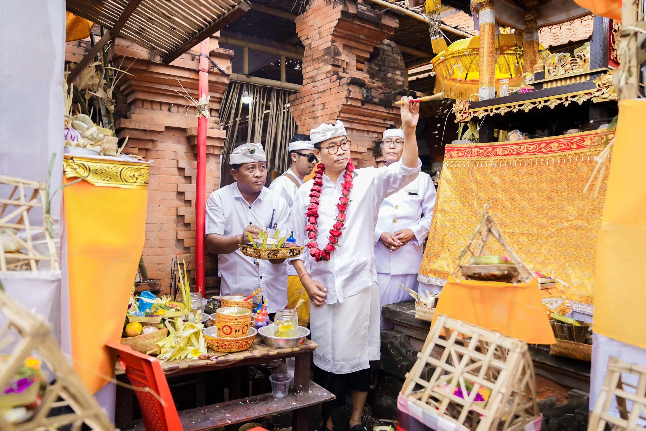 Wakil Bupati (Wabup) Badung, Ketut Suiasa, menghadiri karya ngenteg linggih wraspati kalpa agung padudusan alit Banjar Adat Kung, Desa Dalung, Kecamatan Kuta Utara, Badung, pada Jumat (7/6/2024).