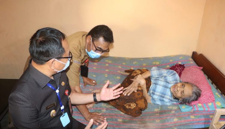 Wakil Bupati Badung, I Ketut Suiasa, mengunjungi dan memotivasi warga lanjut usia (Lansia), Ni Luh Nombereg (83) di Banjar Pendem Desa Dalung, Kecamatan Kuta Utara, Kabupaten Badung, Senin (27/7). Nombereg mengalami sakit dan terbaring di tempat tidur sejak 15 tahun lalu.