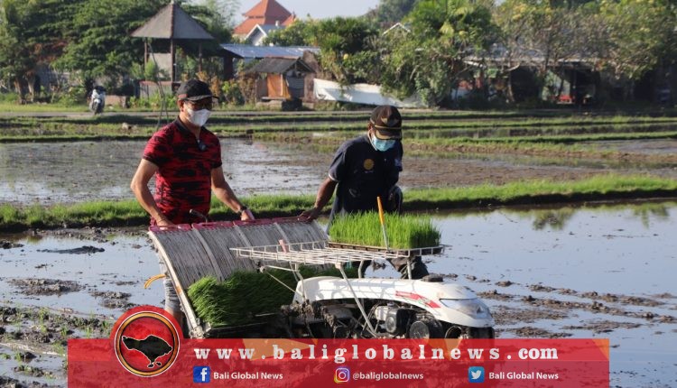 Wabup Suiasa Tanam Padi Menggunakan Transplanter di Sading