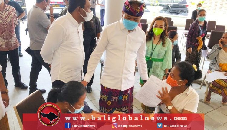 Wakil Bupati Badung, I Ketut Suiasa, memantau pelaksanaan vaksinasi Covid-19 bagi seluruh pelaku pariwisata dan masyarakat yang dilaksanakan di Beachwalk dan Legian Beach Hotel Kamis (8/4).