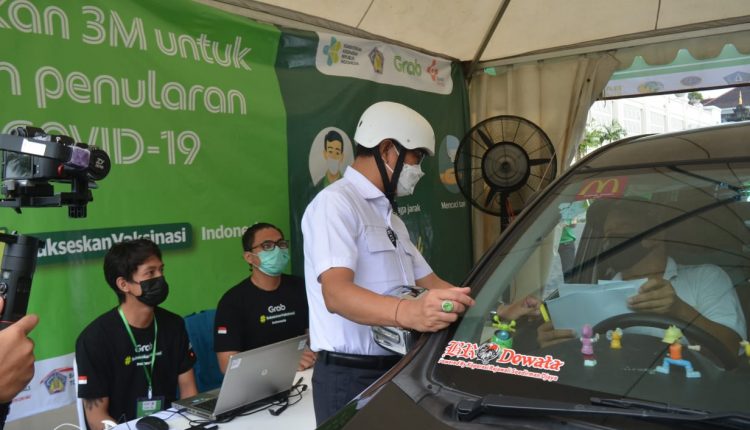 Wakil Bupati Badung, I Ketut Suiasa, meninjau langsung pelaksanaan vaksinasi Covid-19 yang diselenggarakan oleh Grab dengan sistem drive thru di BNDCC Nusa Dua, Rabu (17/3). Pada hari yang sama Wabup Suiasa juga meninjau vaksinasi bagi tokoh masyarakat dan tokoh agama di LPD Desa Adat Legian, Kuta.