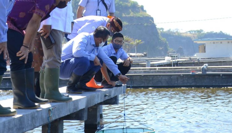 Wakil Gubernur Bali, Tjokorda Oka Artha Ardhana Sukawati mendampingi Menteri Kelautan dan Perikanan, Edhi Prabowo, meninjau Balai Produksi Induk Udang Unggulan dan Kekerangan (BPIUUK) di Desa Bugbug Manggis Sengkidu, Karangasem, Sabtu (15/8).