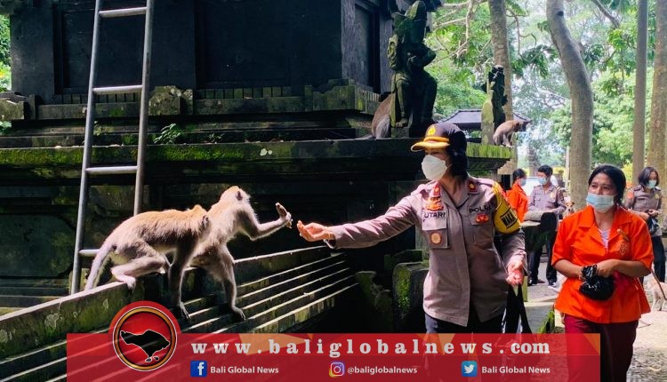 Sebagai insan yang sayang terhadap makhluk hidup, Wakapolres Badung Kompol Ni Putu Utariani, SH memberikan puluhan kera makan di tempat wisata Alas Kedaton kabupaten Tabanan, Bali. Rabu, (23/12).