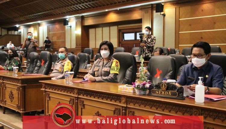Rapat Paripurna penyampaian jawaban pemerintah terhadap pemandangan umum Fraksi-Fraksi tersebut berlangsung dengan aman dan kondusif, “kami turunkan sejumlah personel Satintelkam Polres Badung dalam pengamanan tertutup dilokasi ruang sidang,” Pungkas Putu Utari usai sidang. (bgn123)20111711