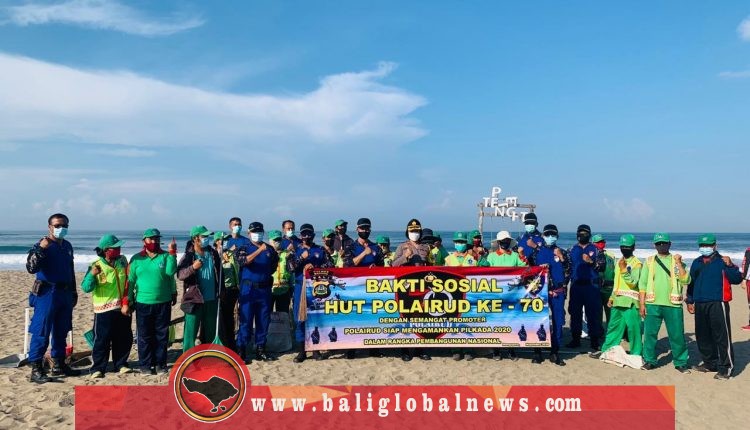 Satuan Polair Polres Badung menggelar berbagai kegiatan sosial di Pantai Petitenget, sebuah pantai nan indah di kawasan wisata selatan kabupaten Badung dalam rangka memperingati HUT Polairud ke-70 tahun 2020.