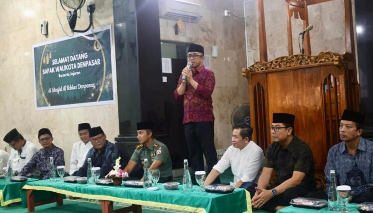 Walikota Denpasar I Gusti Ngurah Jaya Negara didampingi Wakil Walikota Denpasar I Kadek Agus Arya Wibawa dan Sekda Ida Bagus Alit Wiradana menghadiri buka puasa bersama di Masjid Al-Ikhlas, Jalan Gunung Batukaru, Denpasar Barat, pada Rabu (12/3/2025) petang.