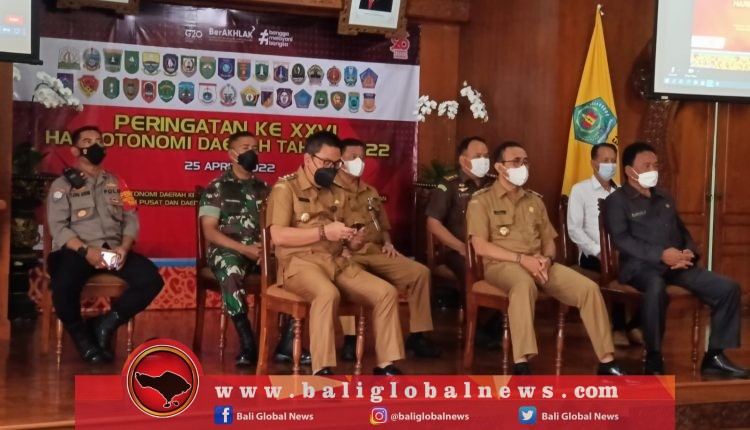 Walikota Denpasar, I Gusti Ngurah Jaya Negara, menghadiri puncak Peringatan Hari Otonomi Daerah (Otda) XXVI tahun 2022 secara daring di Ruang Praja Utama Kantor Walikota Denpasar Senin (25/4) yang diselenggarakan oleh Kementerian Dalam Negeri (Kemendagri) melalui Direktorat Jenderal (Ditjen) Otonomi Daerah (Otda).