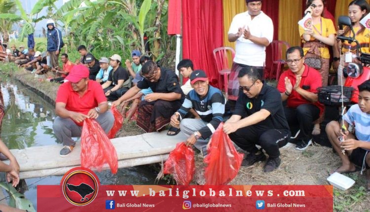 Walikota Denpasar, I Gusti Ngurah Jaya Negara, membuka lomba mancing air deras yang diselenggarakan ST Bina Putra Banjar Laplap Tengah, Desa Penatih Dangin Puri, ditandai dengan menebar ikan lele di Subak Temaga Penatih, Minggu (22/10/2023).