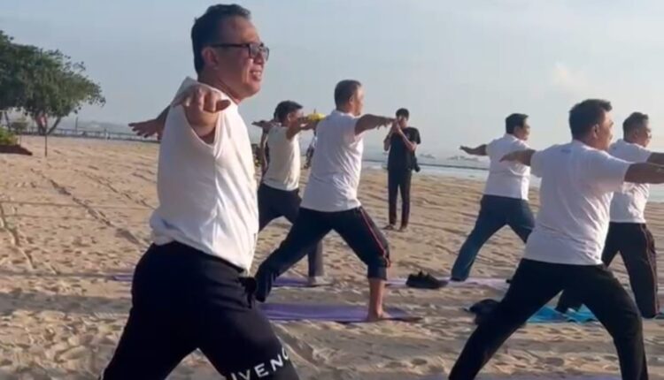 Walikota Denpasar I Gusti Ngurah Jaya Negara bersama delegasi dari berbagai negara di kawasan Asia Pasifik serta pimpinan perangkat daerah di lingkungan Pemerintah Kota Denpasar mengikuti kegiatan yoga bersama yang diselenggarakan CityNet Asia Pacific di kawasan Pantai Sanur, pada Selasa (28/10/2025).