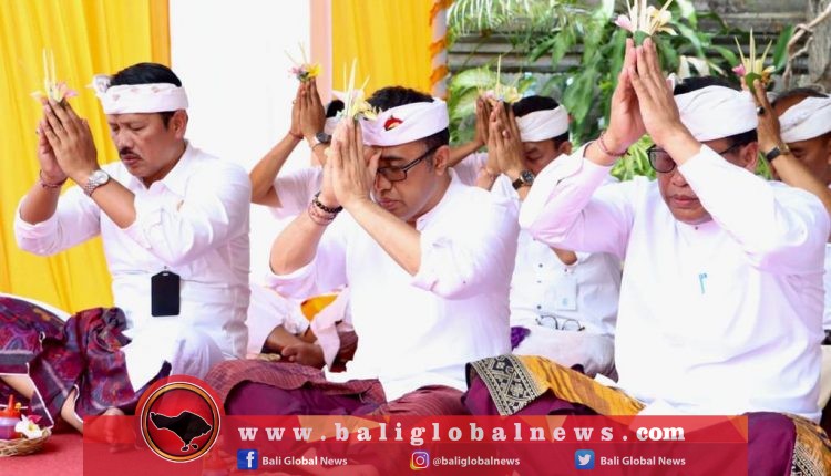 Walikota Denpasar, IGN Jaya Negara, didampingi Sekda I.B Alit Wiradana serta sejumlah pimpinan OPD di lingkungan Pemkot Denpasar mengikuti prosesi piodalan Padmasana Dinas Perumahan Kawasan Permukiman dan Pertanahan (Perkim) Kota Denpasar, bertepatan dengan rahina Purnama Katiga, Kamis (31/8/2023).