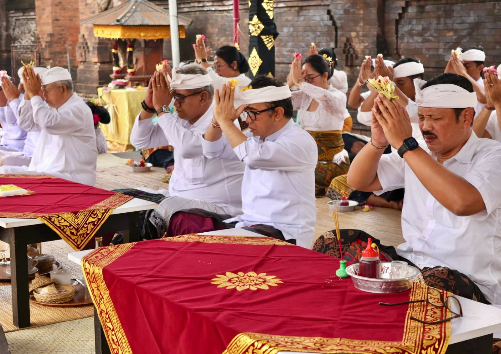 Walikota Denpasar I Gusti Ngurah Jaya Negara menghadiri pujawali agung di Pura Dalem Penataran, Desa Adat Sumerta, Denpasar, pada Saniscara Pon Dungulan, Sabtu (22/11/2025).