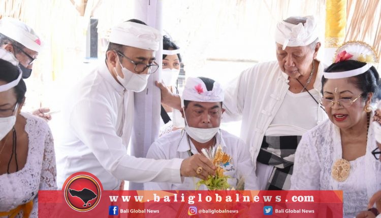 Walikota Jaya Negara berkesempatan mengikuti rangkaian prosesi “Ngajum Puspa” bersama Manggala Karya sekaligus Penglingsir Puri Agung Denpasar, Anak Agung Ngurah Oka Ratmadi.