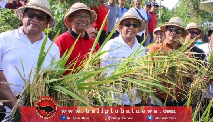 Walikota Jaya Negara Panen Padi Pandan Wangi di Subak Intaran Barat
