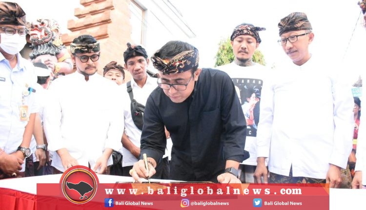 Walikota Denpasar, I Gusti Ngurah Jaya Negara, meresmikan Patung Kalantaka Kalanjaya Style Bebadungan yang berlokasi di Kori Banjar Sindu Kelod, Intaran, Kamis (19/5). Peresmian patung yang merupakan persembahan dari Tim Lokalan Bali Pan Tantri tersebut dilaksanakan dengan penandatanganan prasasti.