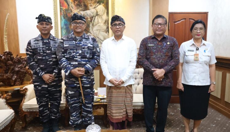 Walikota Denpasar I Gusti Ngurah Jaya Negara menerima silaturahmi Komandan Pangkalan TNI Angkatan Laut (Lanal) Denpasar Kolonel Laut (P) Cokorda GP Pemayun bersama Palaksa Lanal Denpasar Letkol Laut (P) I Gede Padang Suryawan di Kantor Walikota Denpasar pada Rabu (3/9/2025).