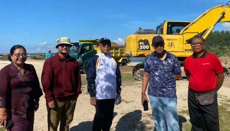 Walikota Denpasar, I Gusti Ngurah Jaya Negara, meninjau pengerjaan perataan stockpile di area Pantai Mertasari, Sanur, Senin (15/4/2024). Kegiatan pengerjaan tersebut merupakan kolaborasi antara Balai Wilayah Sungai (BWS) Bali Penida dan Pemerintah Kota Denpasar.