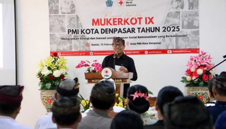 Wakil Walikota Denpasar I Kadek Agus Arya Wibawa yang sekaligus menjabat sebagai Ketua Palang Merah Indonesia (PMI) Kota Denpasar secara resmi membuka Musyawarah Kerja Kota (Mukerkot) IX PMI Kota Denpasar Tahun 2025 di Aula Markas PMI Kota Denpasar pada Kamis (13/2/2025).