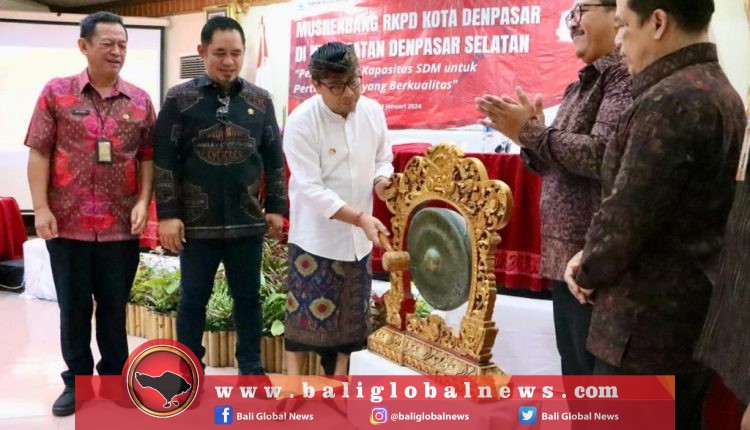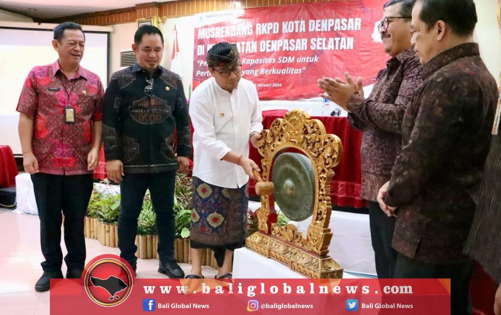 Wakil Walikota Denpasar, I Kadek Agus Arya Wibawa, membuka secara resmi Musyawarah Perencanaan Pembangunan (Musrenbang) Kecamatan Denpasar Selatan Tahun Anggaran 2025 ditandai dengan memukul gong di Hotel Inna Sindhu Beach Sanur, Selasa (16/1/2024).