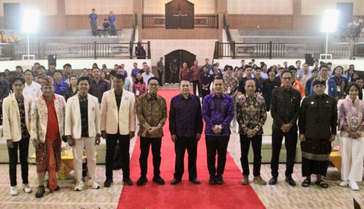 Wakil Walikota Denpasar I Kadek Agus Arya Wibawa menghadiri pembukaan Diklat Kewirausahaan Nasional yang mengangkat tema “Transportasi Kedaulatan Ekonomi Menuju Indonesia Emas 2045”, yang diselenggarakan oleh Pimpinan Pusat Kesatuan Mahasiswa Hindu Dharma Indonesia (KMHDI) di Aula Taman Asoka, Universitas Hindu Indonesia (UNHI) Denpasar pada Sabtu (19/4/2025).