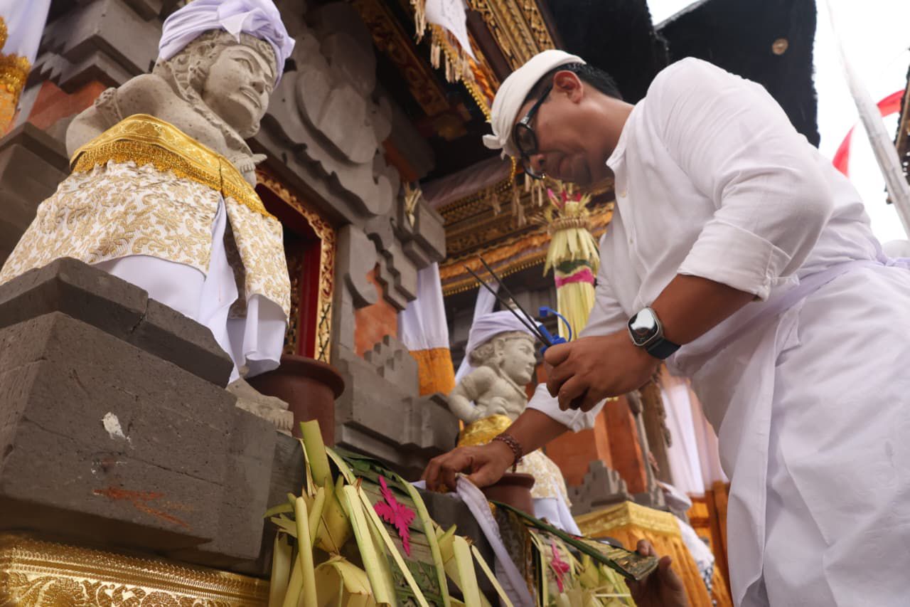 Wakil Walikota (Wawali) Denpasar I Kadek Agus Arya Wibawa menghadiri karya melaspas pelinggih parahyangan di Pura Desa Adat Pedungan pada Purnama Kelima, Rabu (5/11/2025). Wawali Arya Wibawa juga berkesempatan mendem pedagingan, dan juga menyerahkan secara simbolis bantuan Pemerintah Kota Denpasar, yakni bantuan hibah barang Anggaran Induk 2025 dari Dinas Perkim untuk renovasi Pura Desa Adat Pedungan Rp1.300.000.000.