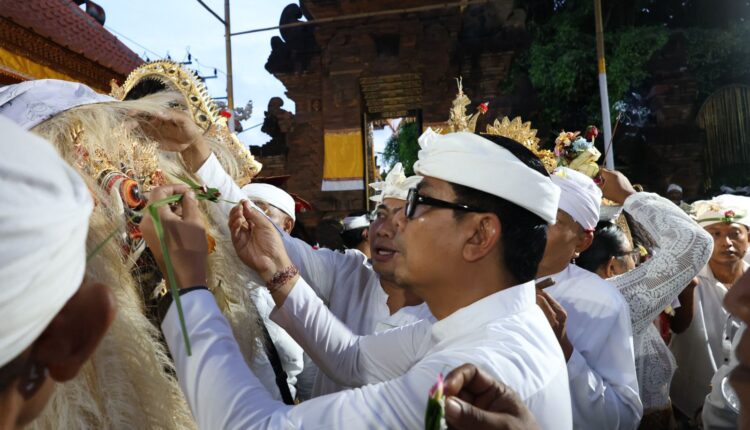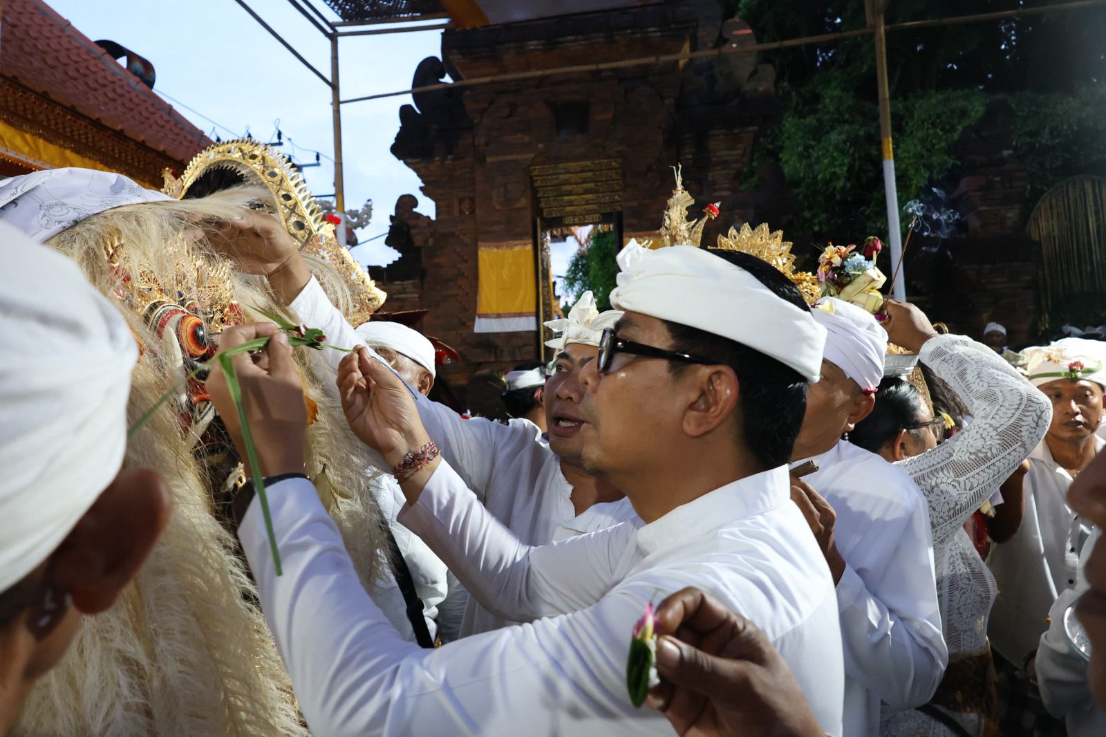 Wakil Walikota Denpasar I Kadek Agus Arya Wibawa menghadiri upacara ngeratep, melaspas dan mapasupati pelawatan Ratu Ayu (Rangda) dan Barong di Pura Sor Waringin Ulun Desa Padang Sumbu, Desa Adat Kerobokan, Desa Padangsambian Kelod, Kecamatan Denpasar Barat, pada Jumat (14/11/2025). Wakil Walikota Arya Wibawa juga menyerahkan secara simbolis bantuan hibah Pemerintah Kota Denpasar sebesar Rp500 juta untuk mendukung pelaksanaan upacara tersebut.