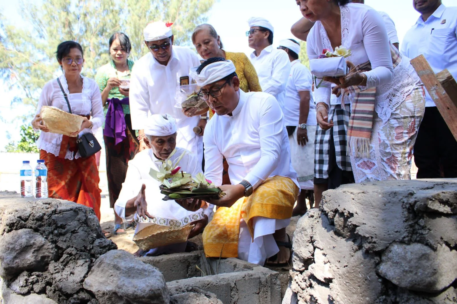 Wakil Walikota Denpasar, I Kadek Agus Arya Wibawa, mendem dasar atau meletakkan batu pertama menandai dimulainya pembangunan Kantor Desa Sanur Kaja, Rabu (8/5/2024).