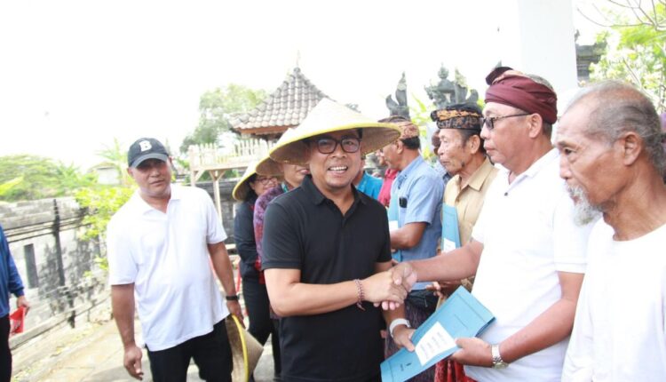 Wakil Walikota Denpasar, I Kadek Agus Arya Wibawa menyerahkan bantuan berupa alat-alat pertanian kepada petani dan kelompok ternak wilayah subak se-Kota Denpasar di Subak Anggabaya, Kecamatan Denpasar Timur, pada Selasa (6/8/2024).