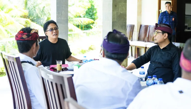 Bupati Kabupaten Badung, I Nyoman Giri Prasta, menerima audiensi Wakil Walikota Denpasar Kadek Agus Arya Wibawa bersama Prajuru Banjar Pesanggaran, Pedungan, Denpasar Selatan, di Rumah Jabatan Bupati, Puspem Badung, pada Jumat (1/3/2024).