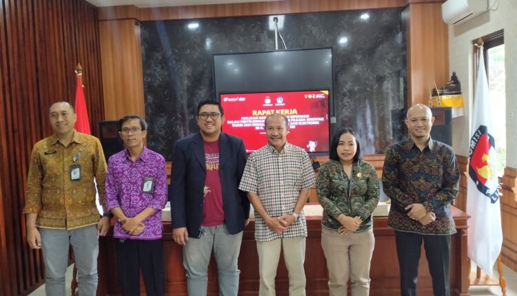 Pertemuan dihadiri seluruh anggota KPU Badung beserta jajarannya, Komisaris Bawaslu Wayan Semara Cipta dan sejumlah wartawan. (bgn003)24121706